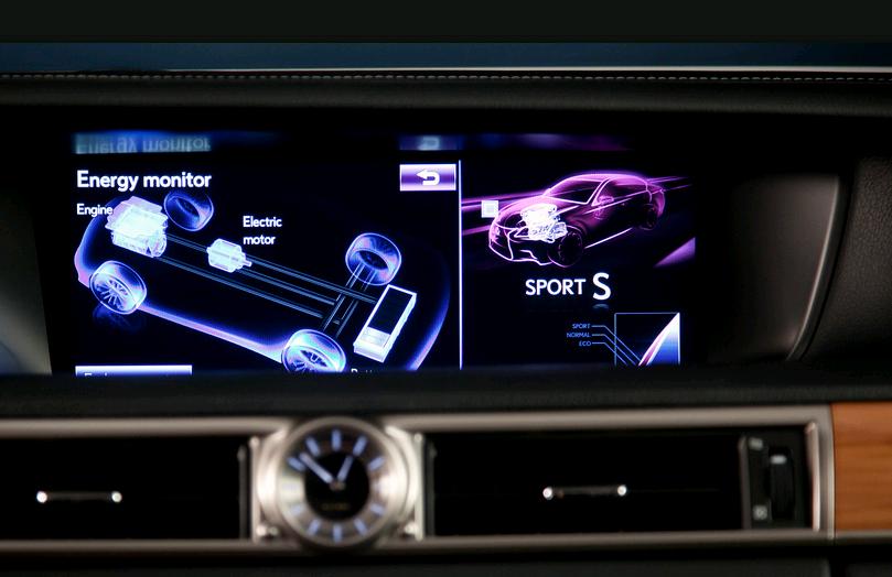 El gran tamaño de la pantalla display que incorporará el nuevo GS 450h permitirá ahora, apreciar con mucho más detalle la visión que tenemos, por ejemplo, una vez engranada la marcha atrás del espacio disponible tras el coche. También se apreciará mejor el monitor de energía, el funcionamiento instantáneo de la tecnología Lexus Hybrid Drive, mostrando con gráficos de alta definición el motor de combustión, el motor eléctrico, el sistema de baterías y los flujos de energía eléctrica.