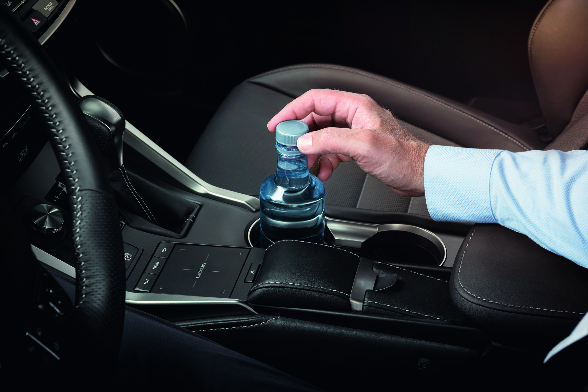 Con un total de seis portavasos dentro de su espacioso habitáculo, todos los ocupantes del NX disponen de un lugar para dejar sus botellas, pero a diferencia de los portavasos convencionales, los del conductor y el pasajero delantero tienen un revestimiento de elastómero, un material de alta fricción que se suele emplear en las suelas de las zapatillas de atletismo.