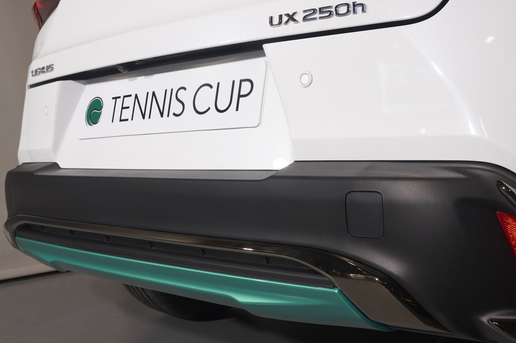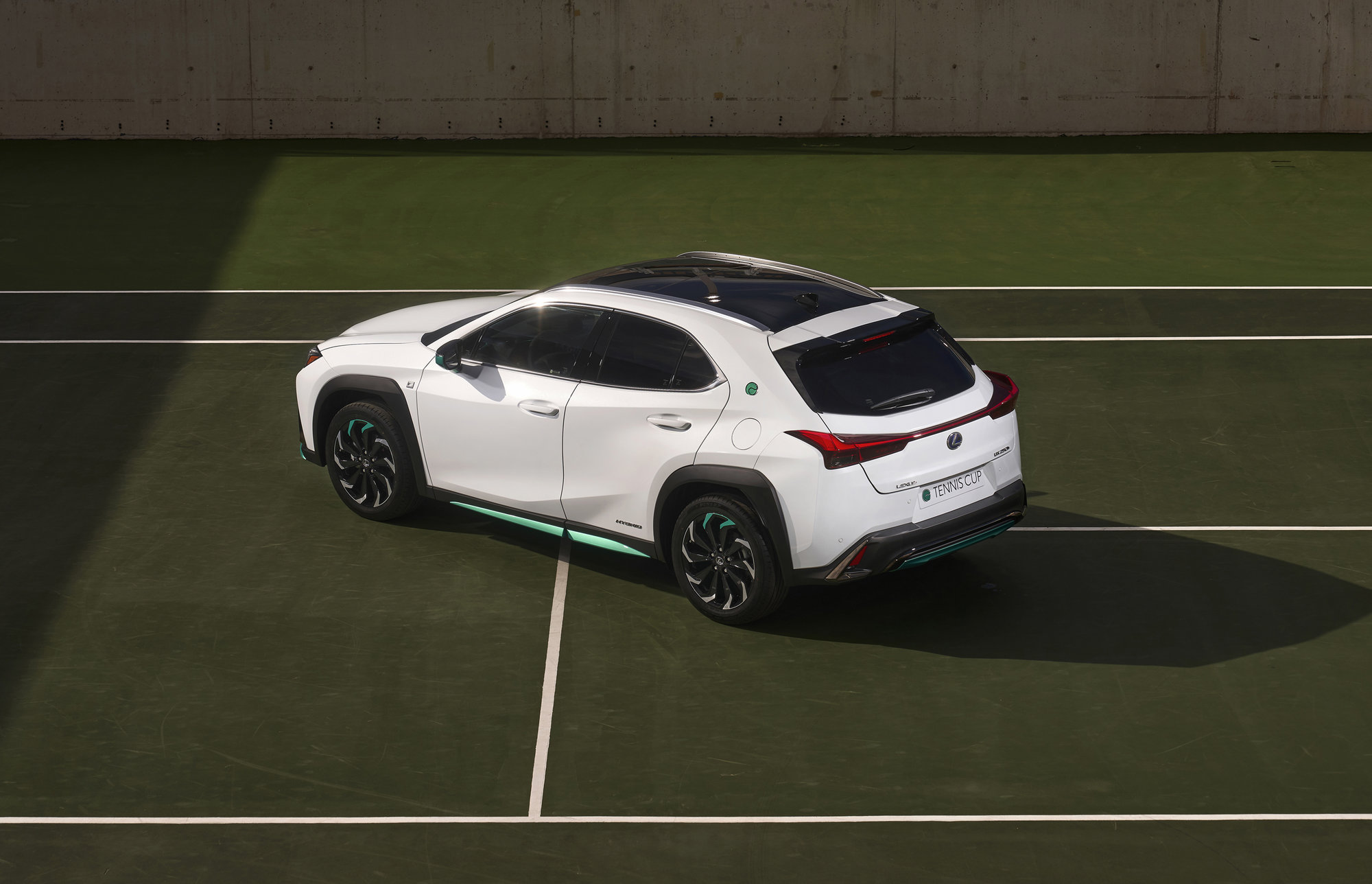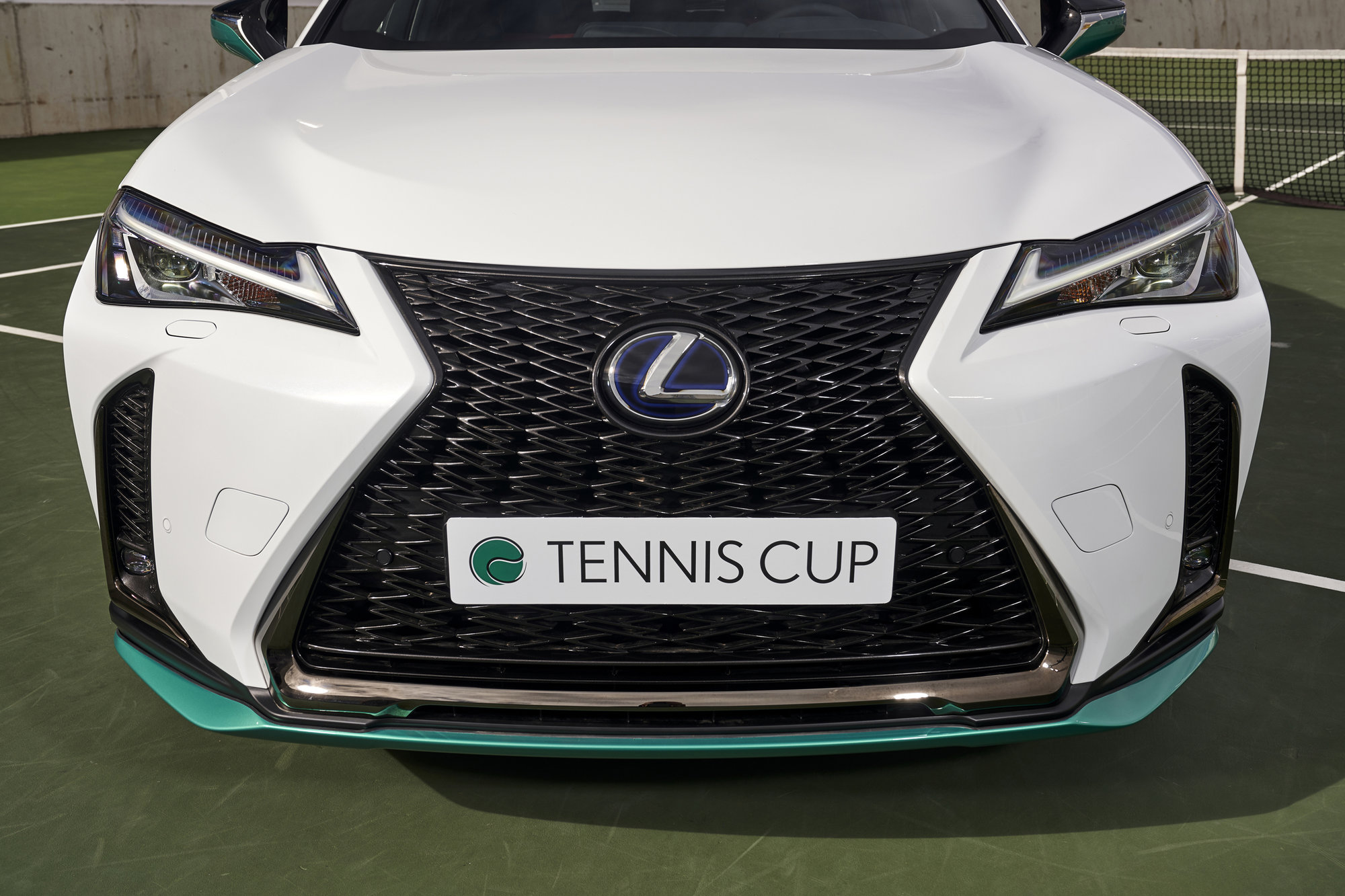 El UX 250h ‘Tennis Cup’ Edition luce un elegante color exterior Blanco Nova en toda su carrocería a excepción del techo, que luce un color Negro Grafito. Esta atractiva combinación de colores contrasta todos los detalles que incorpora está edición especial en color Tennis Green.