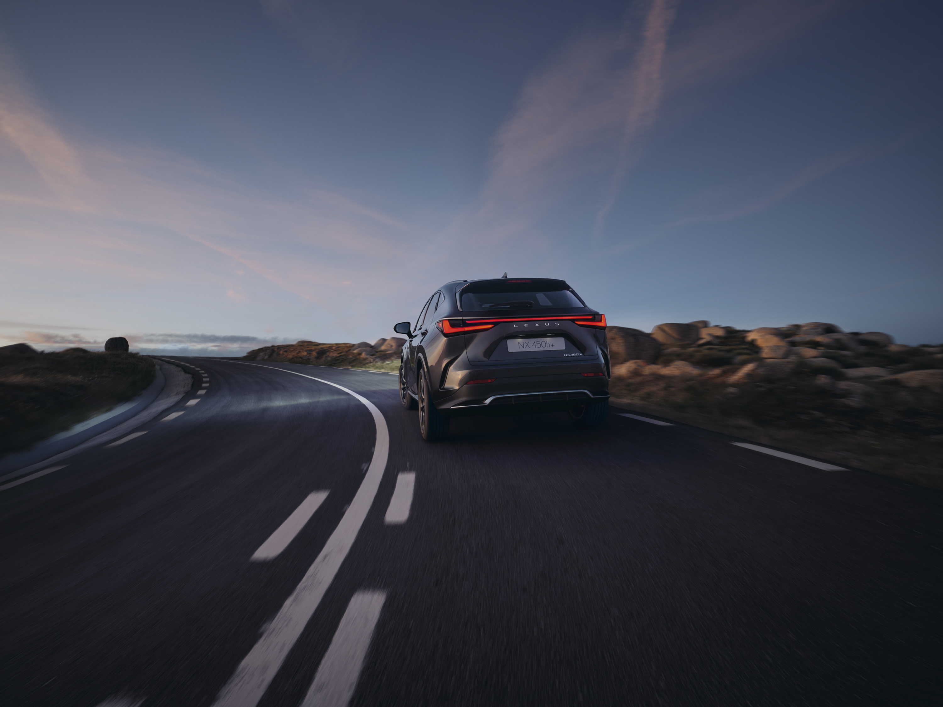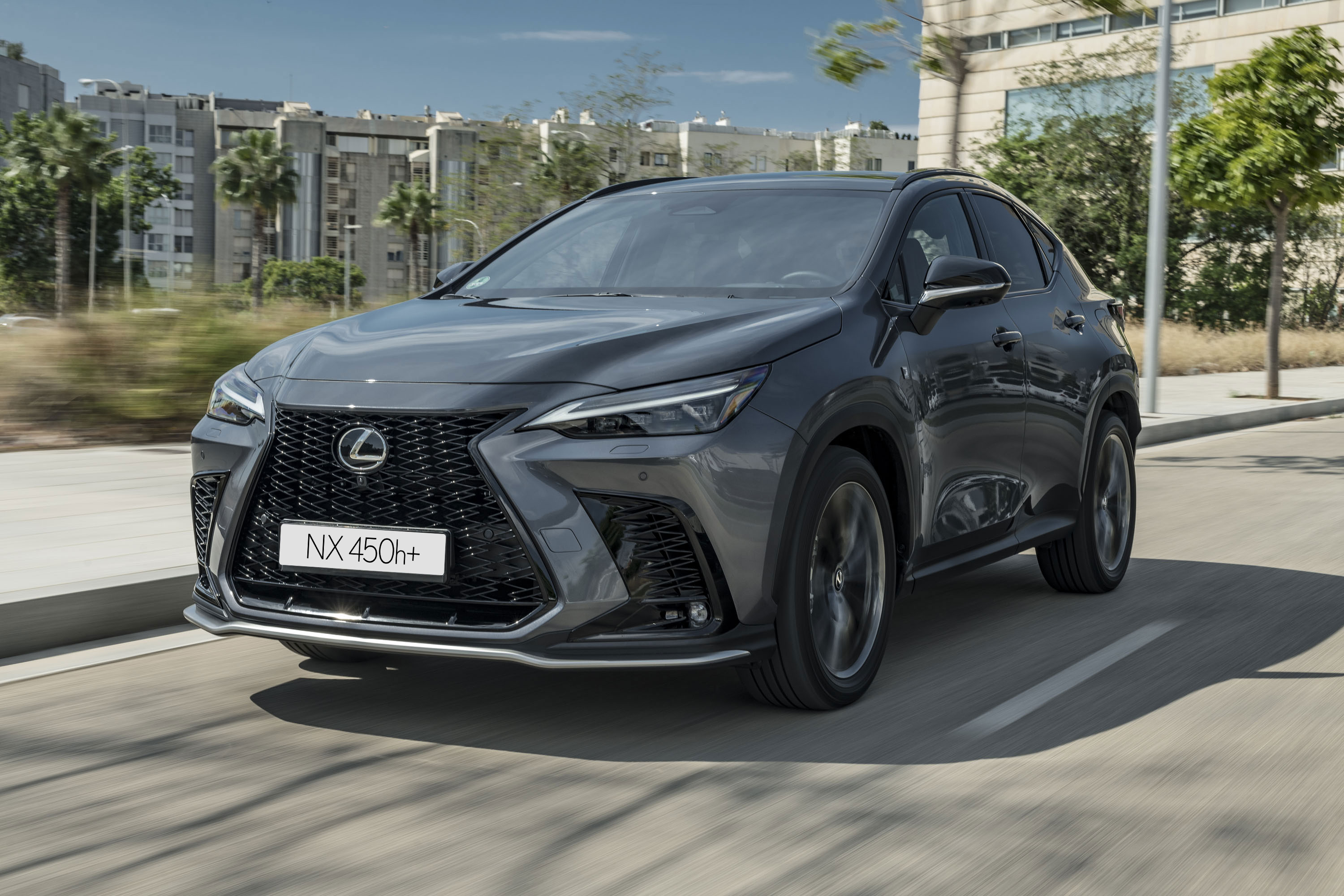 El 450h+ es el modelo de referencia de la nueva gama NX, un vehículo que abre un nuevo capítulo para Lexus, introduciendo nuevas direcciones de diseño, nuevas motorizaciones y mejoras considerables en términos de rendimiento dinámico. La innovación tecnológica proporciona opciones multimedia y de conectividad superiores, así como los nuevos y mejorados sistemas de seguridad activa y asistencia al conductor de Lexus Safety System+.