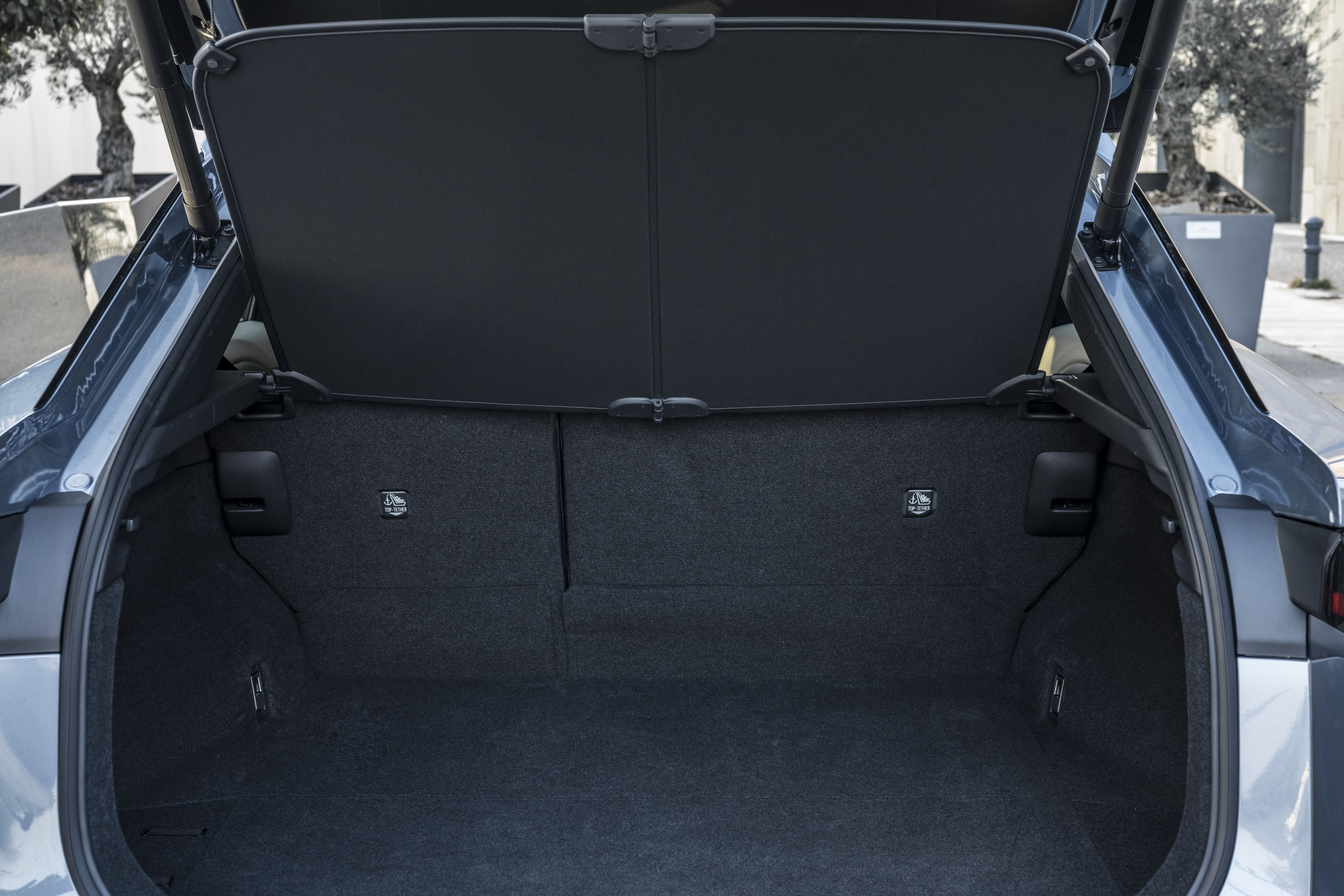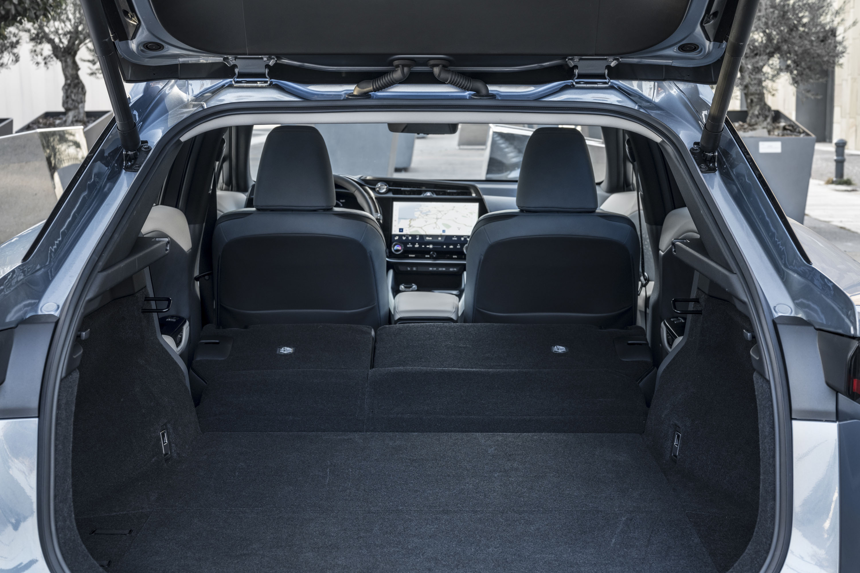 El espacio disponible en el compartimento de carga no se ve afectado por la batería del vehículo, y se han ganado nueve litros adicionales al montar el subwoofer del equipo de sonido en el portón trasero. Con todos los asientos colocados, el volumen total es de 522 litros; abatiendo los asientos traseros, el volumen máximo es de 1.451 litros, aprovechado hasta el techo. Con el cubremaletero colocado, hay espacio para dos maletas (de 110 y 97 litros). Bajo el suelo del maletero, hay otros 58 litros de espacio en una zona de forma muy práctica, totalmente forrada, ideal para guardar el cable de carga.