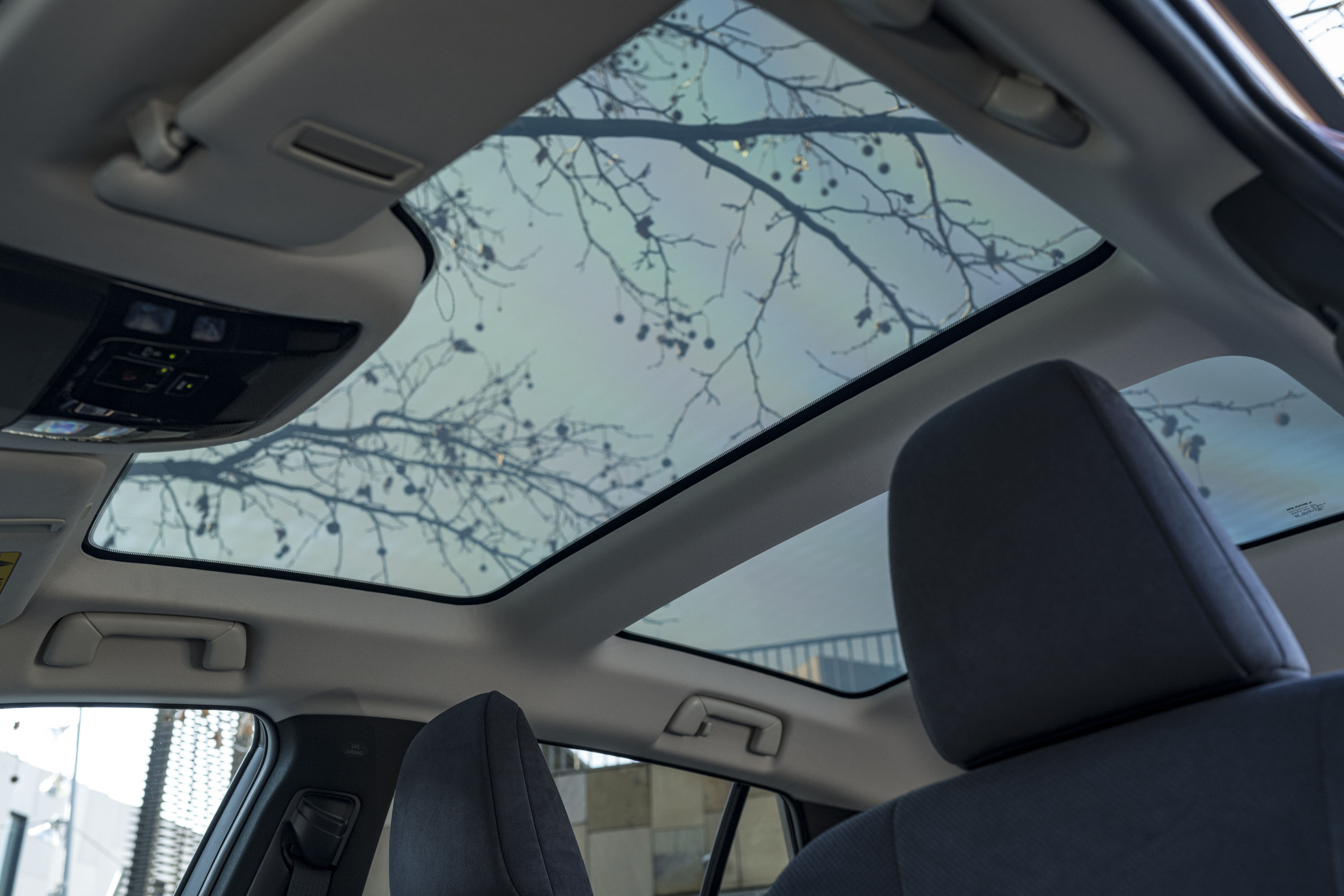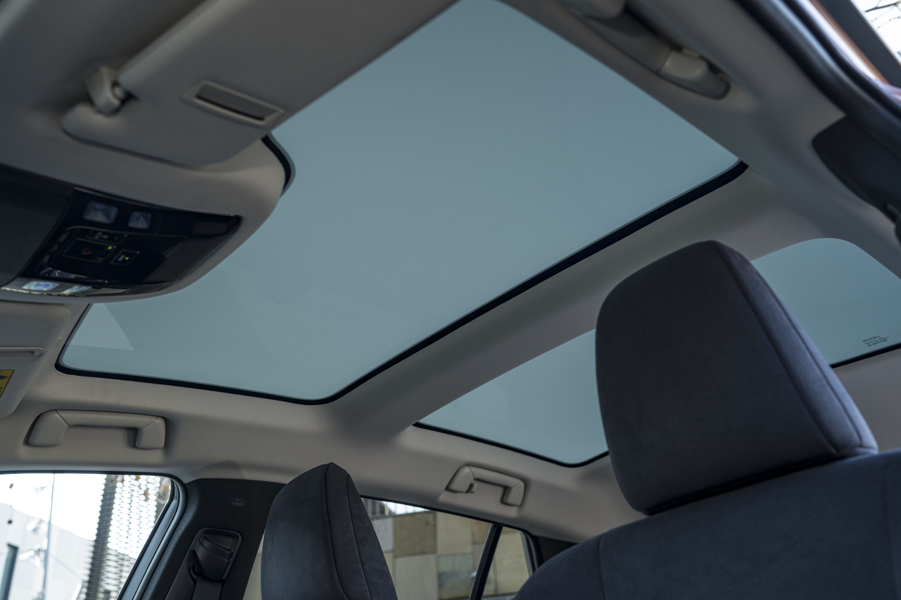 El techo panorámico atenuable (de serie en el RZ Luxury) aumenta la sensación de amplitud y luminosidad en el habitáculo, y se extiende hacia atrás para que los pasajeros traseros puedan disfrutar igualmente de una vista despejada, incluso con los asientos traseros reclinados (el techo es más ancho y 44 mm más largo que el del Lexus NX). El cristal cuenta con un revestimiento de bajas emisiones –low-e– que refleja la radiación infrarroja y atenúa el calor radiante en días soleados, conservando el calor dentro del habitáculo cuando fuera hace frío.