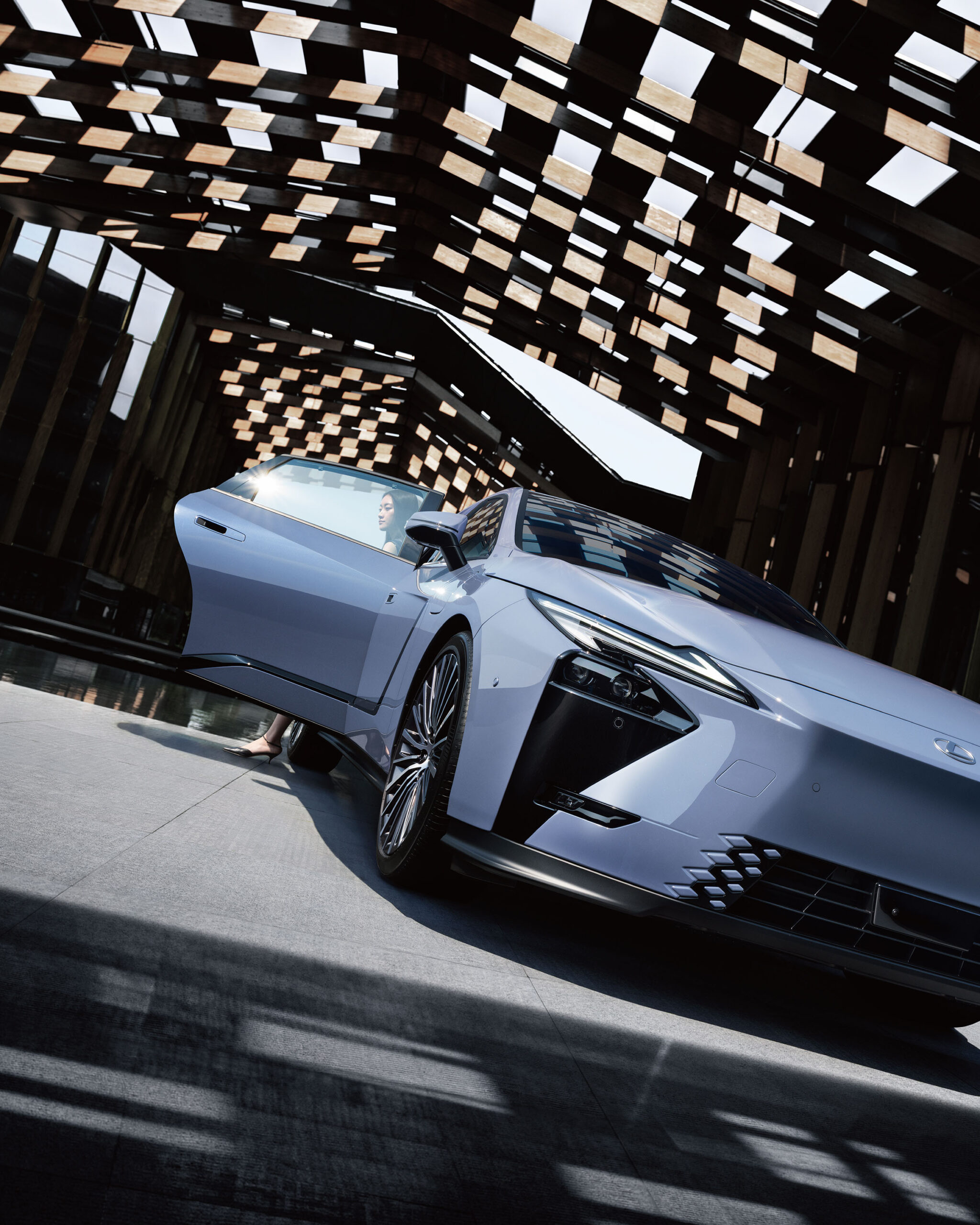 La imagen exterior del nuevo ES combina una presencia audaz y vanguardista con una imagen minimalista, en línea con la visión de Lexus para el diseño de vehículos eléctricos de nueva generación.